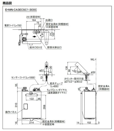 ■ 洗面器や手洗器への取付けは組合せ可能であることをご確認いただく必要があります。メーカーカタログの自動水栓一体型電気温水器・加温自動水栓と洗面器・手洗器の組合せ一覧表でご確認ください。