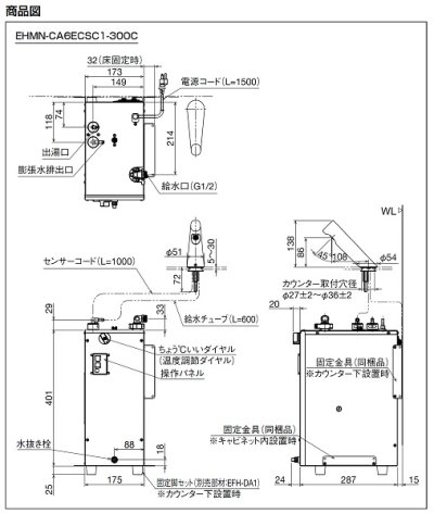 ■ 電気温水器本体は必ず吐水口より下に設置してください。