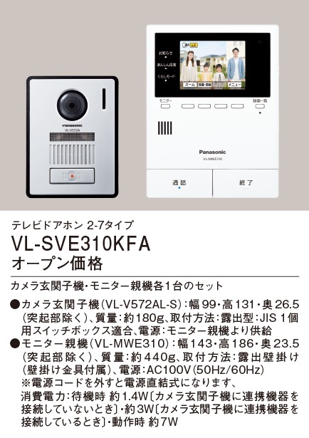 パナソニック VL-SVE310KFA インターホン テレビドアホン 2-7タイプ 電源コード式 (VL-SVE310KF 後継品) [∽] [vl-sve310kfa]