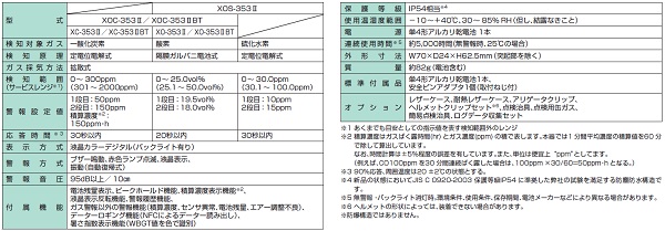 ・Bluetooth搭載タイプ(XC-353IIBT)は、スマホ・タブレットの専用アプリで濃度/トレンドグラフの表示が可能。また、ガス警報時に作業員の位置情報などを知らせる自動送信メールの設定が可能。