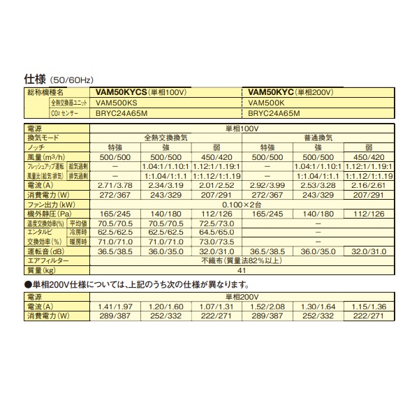 ダイキン VAM50KYC 換気扇 全熱交換器ユニット ベンティエール 天井埋込ダクト形 標準 単相200V CO2センサー付き [♪■] [vam50kyc]