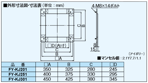 パナソニック 換気扇部材 金枠 20cm換気扇用 FD付屋外フード取付用 【FY-KJ201】 [◇] [FY-KJ201]