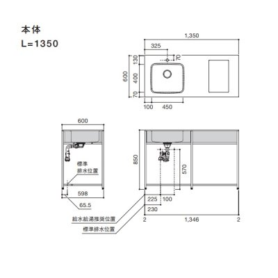 ※コンロ・水栓・棚板等は別売です。SOUシリーズよりお選びください。