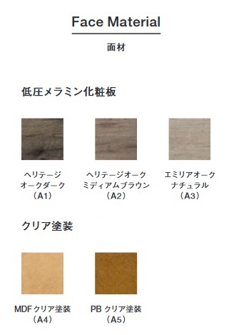 エミリアオークナチュラル【A3】/MDFクリア塗装【A4】/PBクリア塗装【A5】