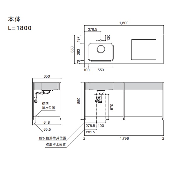 ※コンロ・水栓・棚板等は別売です。SOUシリーズよりお選びください。