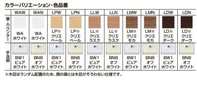 ※扉・カウンターカラー、手洗器のカラーを選択してください。型番通りの御手配になりますので、メーカーホームページ等で確認の上ご注文ください。