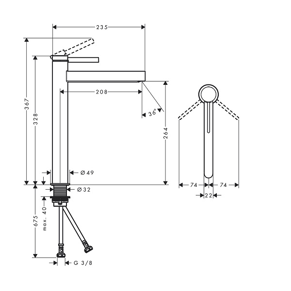 ハンスグローエ 76070670 フィノリス シングルレバー洗面混合水栓 260 (ポップアップ引棒無) マットブラック ♪ [hg-76070670]