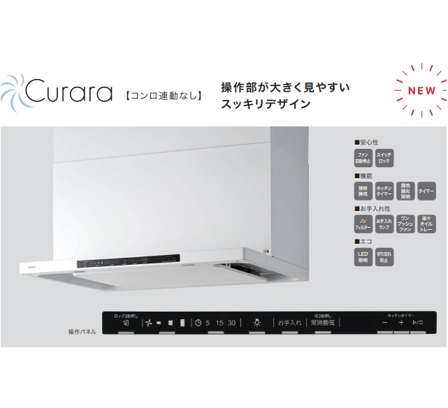 カテゴリ:換気扇 レンジフード スリム型ノンフィルター シロッコファン Curara クララ