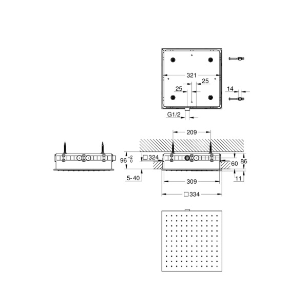 グローエ 2673100J シャワーシステム 浴室用水栓 レインシャワー アクア モノオーバーヘッド シャワー(天井付)334 x 334 mm [gr-2673100j]