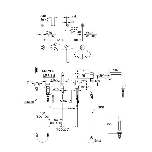 グローエ 19578DC1J 浴室用水栓 エッセンス シングルレバーデッキバス シャワー混合栓(スーパースチール) ※受注生産品 § [gr-19578dc1j]
