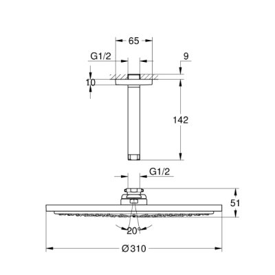 グローエ 26067DL0J シャワー&シャワーシステム モダン オーバーヘッドシャワー 310mm 天井付けシャワーアームセット(ブラッシュドウォームサンセット) ※受注生産品 § [gr-26067dl0j]