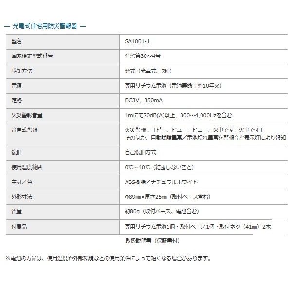 光電式住宅用防災警報器 国家検定合格品 煙式