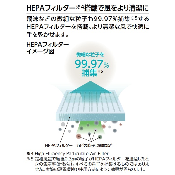 ※ 高速風×温風で手を乾かします。(風量強弱×ヒーター入切の4モード)