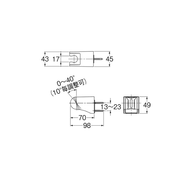 ●シャワー角度が5段階に切替可。