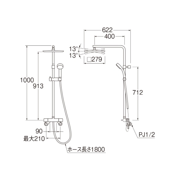 SANEI/三栄水栓 SK18C-1S2-MDP-13 混合栓 壁付シャワー混合栓 サーモシャワー混合栓 URBAN TOWER マットブラック 受注生産品 § [sk18c-1s2-mdp-13]