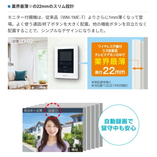 カメラ付玄関子機:JU-DAとモニター付親機:WS-1ME-T、