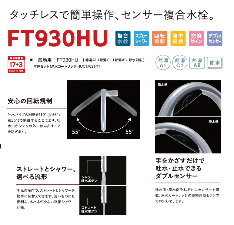 『在庫あり』三菱ケミカル・クリンスイ FT930HU 浄水機能付きセンサー複合水栓 アンダーシンク タッチレス 浄水カートリッジ付 ☆2 [ft930hu-sale]