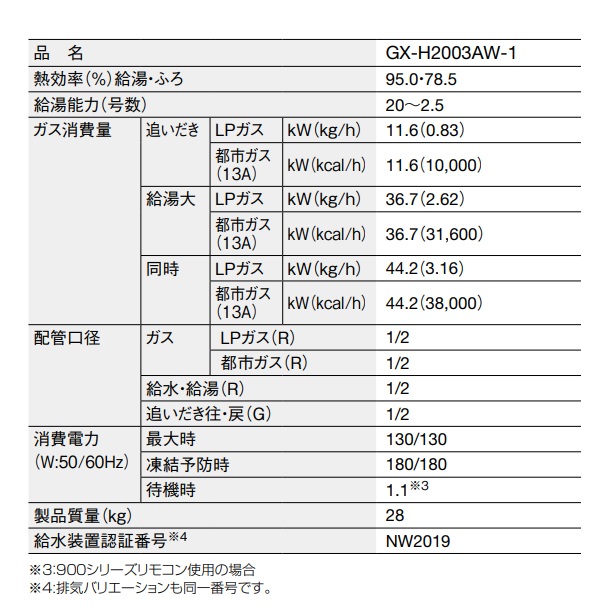 型番:GX-H2003AW-1 / GX H2003AW 1