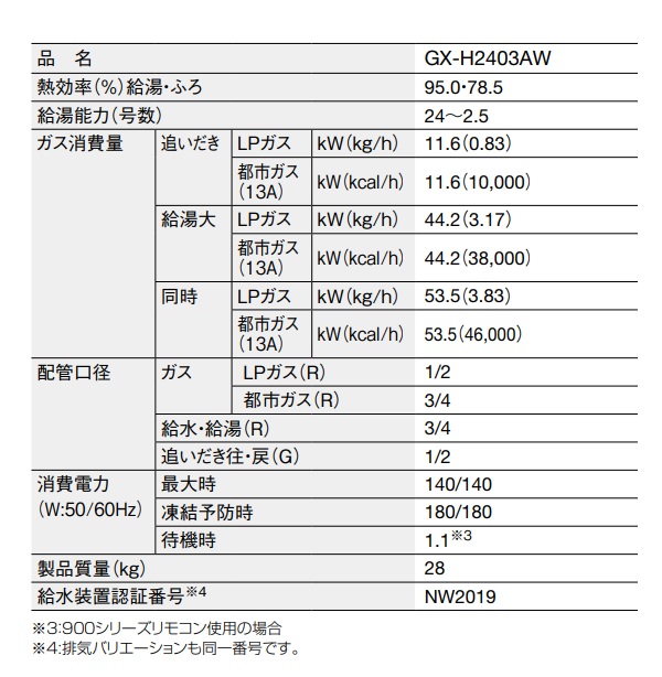 型番:GX-H2403AW / GX H2403AW