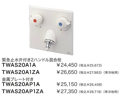水栓金具 TOTO TWAS20A1ZA(セット) 緊急止水弁付2ハンドル混合栓 洗濯機用水栓「ピタットくん」 壁埋め込みタイプ(樹脂配管用)寒冷地用 [■] [twas20a1za]