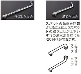 先端取付型浄水器を取り付けると、スパウトが伸びる