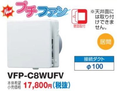 日本キヤリア/旧東芝 VFP-C8WUFV 換気扇 パイプ用ファン 居間用 接続ダクトφ100mm プチファン 壁面取付 風量形パイプ用 PM2.5対応給気 [vfp-c8wufv]