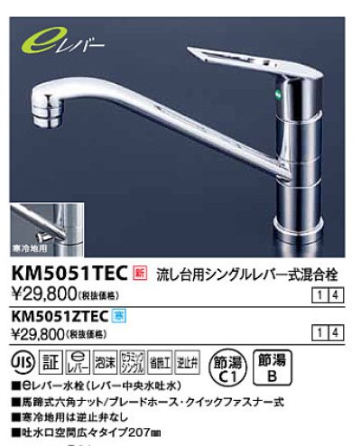 水栓金具 KVK KM5051ZTEC 流し台用シングルレバー式混合栓 寒冷地 [KM5051ZTEC]