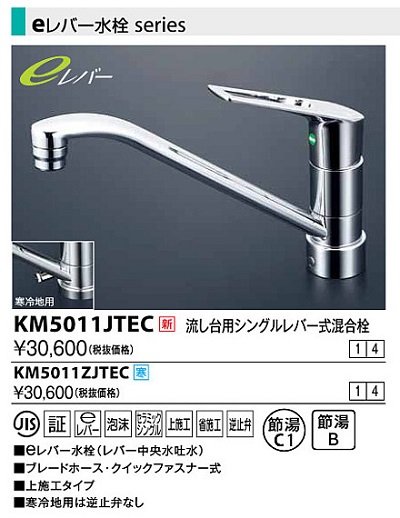水栓金具 KVK KM5011JTEC 流し台用シングルレバー式混合栓 [km5011jtec]