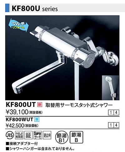 水栓金具 KVK KF800UT 壁付サーモスタット式水栓 [KF800UT]