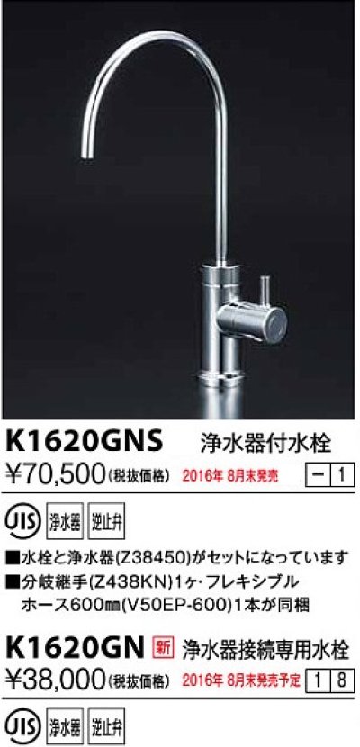 水栓金具 KVK K1620GNS 浄水器付水栓 [k1620gns]
