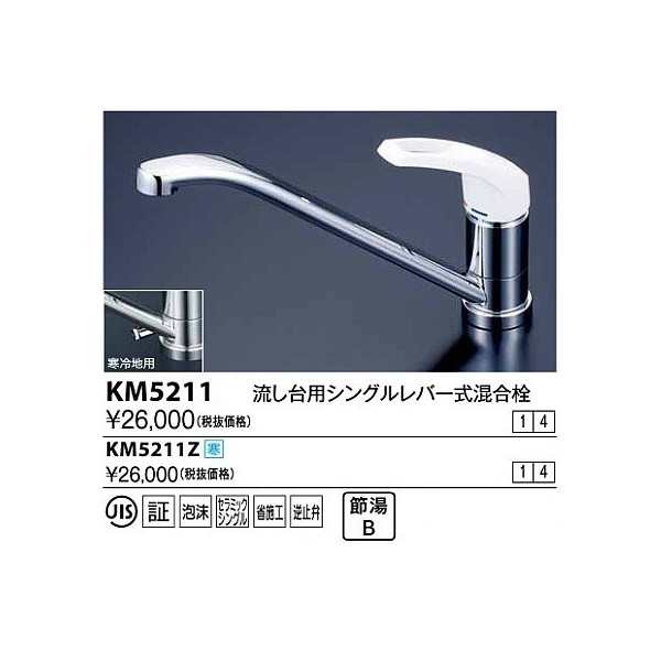 カテゴリ:水栓金具 キッチン シングルレバー式混合栓 メーカー:KVK 型番:KM5211Z