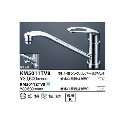 水栓金具 KVK KM5011TV8 流し台用シングルレバー式混合栓 吐水口回転規制80° [km5011tv8]