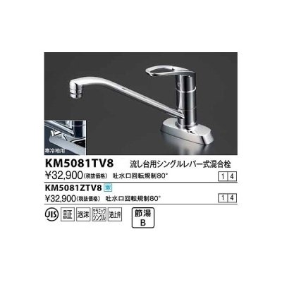 水栓金具 KVK KM5081TV8 流し台用シングルレバー式混合栓 吐水口回転規制80° [km5081tv8]