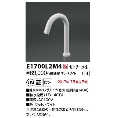 KVK E1700L2M4 センサー水栓 AC100V仕様 ホワイト ロング [e1700l2m4]