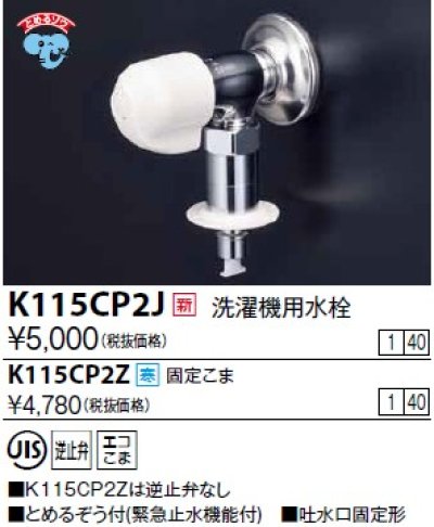 カテゴリ:水栓金具 単水栓 メーカー:KVK 型番:K115CP2Z