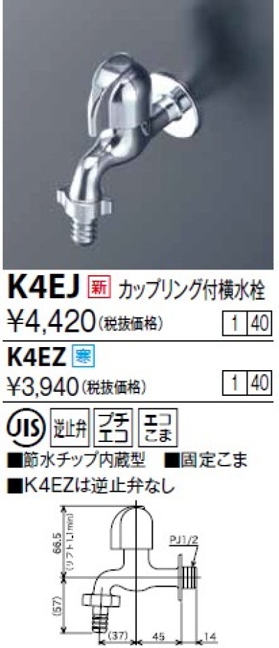 カテゴリ:水栓金具 単水栓 メーカー:KVK 型番:K4EZ