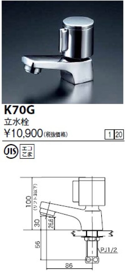 カテゴリ:水栓金具 単水栓 メーカー:KVK 型番:K70G