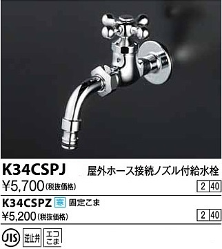 カテゴリ:水栓金具 単水栓 メーカー:KVK 型番:K34CSPZ