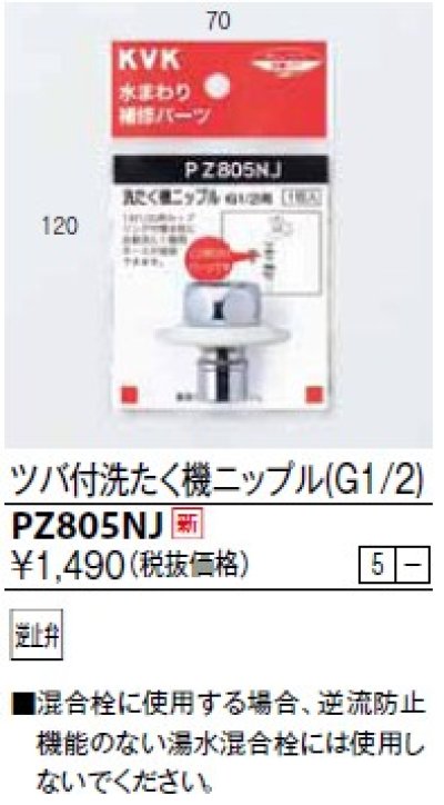 水栓部品 KVK PZ805NJ ツバ付洗たく機ニップル(G1/2) [PZ805NJ]