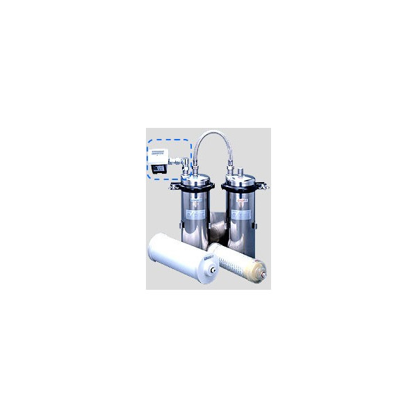 抗菌活性炭と中空糸膜フィルタのカートリッジを独立させた2筒式の浄水ユニットで、1筒式と比べて約3倍の浄水能力を発揮します。