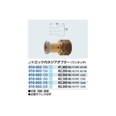 樹脂管 カクダイ 610-003-13B JKロック内ネジアダプター(ワンタッチ) [□] [kkd-610-003-13b]