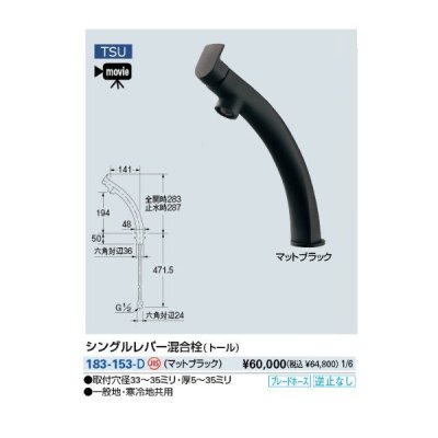 水栓金具 カクダイ 183-153-D シングルレバー混合栓(トール・マットブラック) [■] [kkd-183-153-d]