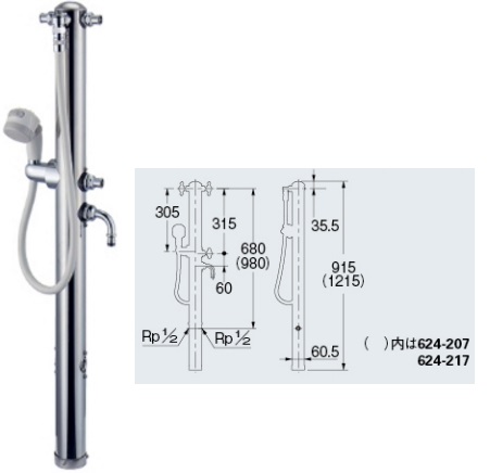ガーデニング カクダイ 624-217 共用ステンレス双口シャワー混合栓柱(ペット用) [■] [kkd-624-217]