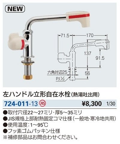 水栓金具 カクダイ 724-011-13 左ハンドル立形自在水栓(熱湯吐出用) [□] [kkd-724-011-13]