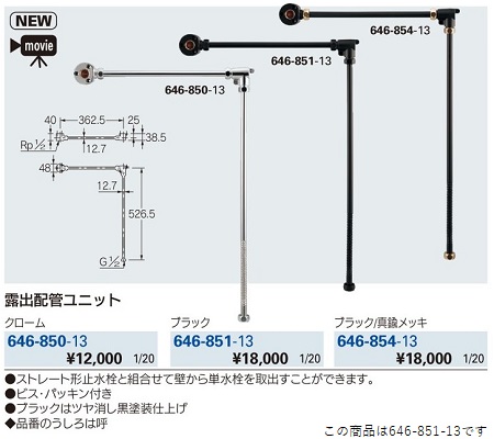 水栓金具 カクダイ 646-851-13 露出配管ユニット//ブラック [kkd-646-851-13]