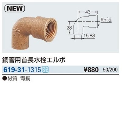 水栓金具 カクダイ 619-31-1315 銅管用首長水栓エルボ//13×15.88 [□] [kkd-619-31-1315]