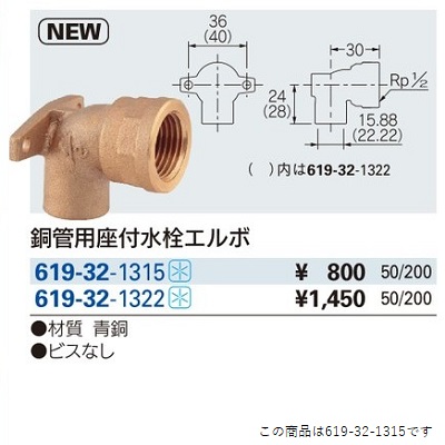 水栓金具 カクダイ 619-32-1315 銅管用座付水栓エルボ//13×15.88 [kkd-619-32-1315]
