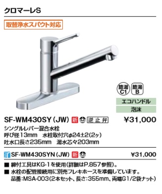 水栓金具 INAX/LIXIL SF-WM430SYN(JW) キッチン用水栓金具 ツーホールタイプ クロマーレS シングルレバー混合水栓 取替浄水スパウト対応 寒冷地用 [★] [sf-wm430syn-jw]