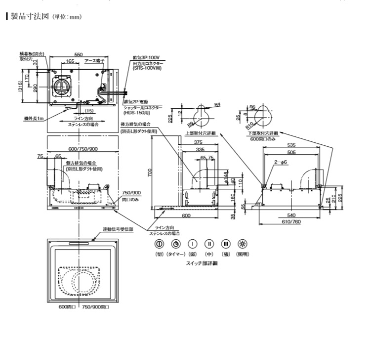 富士工業/FUJIOH 【ANGL-751 S/TW/TBK】 換気扇 レンジフード 間口 750mm アリアフィーナ アンジェリーナ 壁面取付けタイプ ※受注生産品 [♪§] [angl-751-s-tw-tbk]