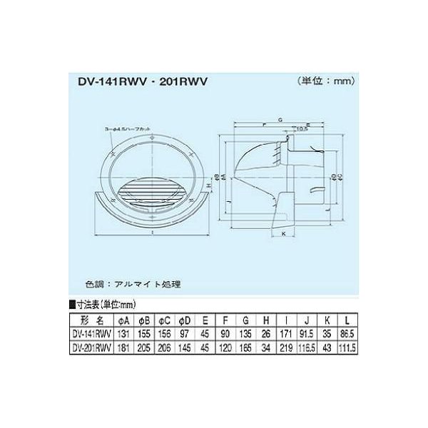 日本キヤリア/旧東芝 換気扇 システム部材 丸型パイプフード 【DV-201RWV】 φ150用 アルミ製(ガラリ付) [DV-201RWV]